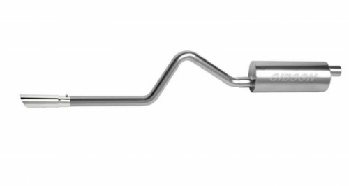 Gibson 617300 Stainless Steel Single Exhaust System Gibson Single exhaust systems are Gibson's most popular exhaust … the systems you can trust when you want reliable performance from your truck. Perfect for towing and general performance applications, Gibson Single exhaust systems use popular Superflow performance mufflers that offer increased power at a cost-effective price. These are Gibson's best performing exhaust systems. Dyno results show that they make maximum torque and horsepower at the lower-end of the power band (1800 to 3000 rpm) with a deep, aggressive exhaust tone. A polished or black ceramic coated T304 stainless steel tip with clamp less connection design is included with each kit. Select systems also include a Xtreme Terrain (XT) tip. These turn-down pipes can be installed in place of the standard tip to provide extra ground clearance for treacherous terrain. Features of Gibson Single exhaust systems include: * Big block sound * Minimal interior sound levels * Heavy-duty aluminized steel or stainless steel tubes for extended durability * Mandrel-bent tubing maintains constant exhaust flow through each bend for outstanding performance * Zinc plated hangers and clamps * Easy, no-drill installation; no welding required